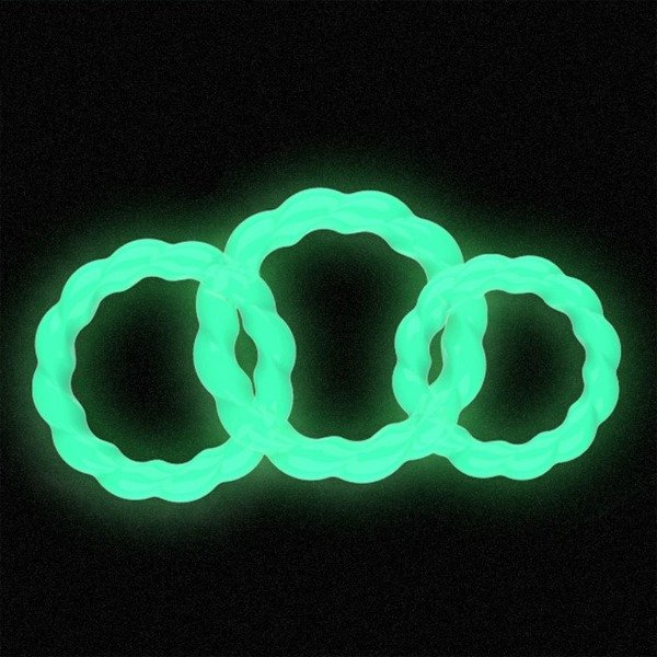 Kit de 3 anillos peneanos de diseño irregular que ayudan a mantener la erección y retardar la eyaculación. Se coloca en la base del pene erecto, y al ser tres unidades de distinto tamaño se pueden colocar en testículos y glande.